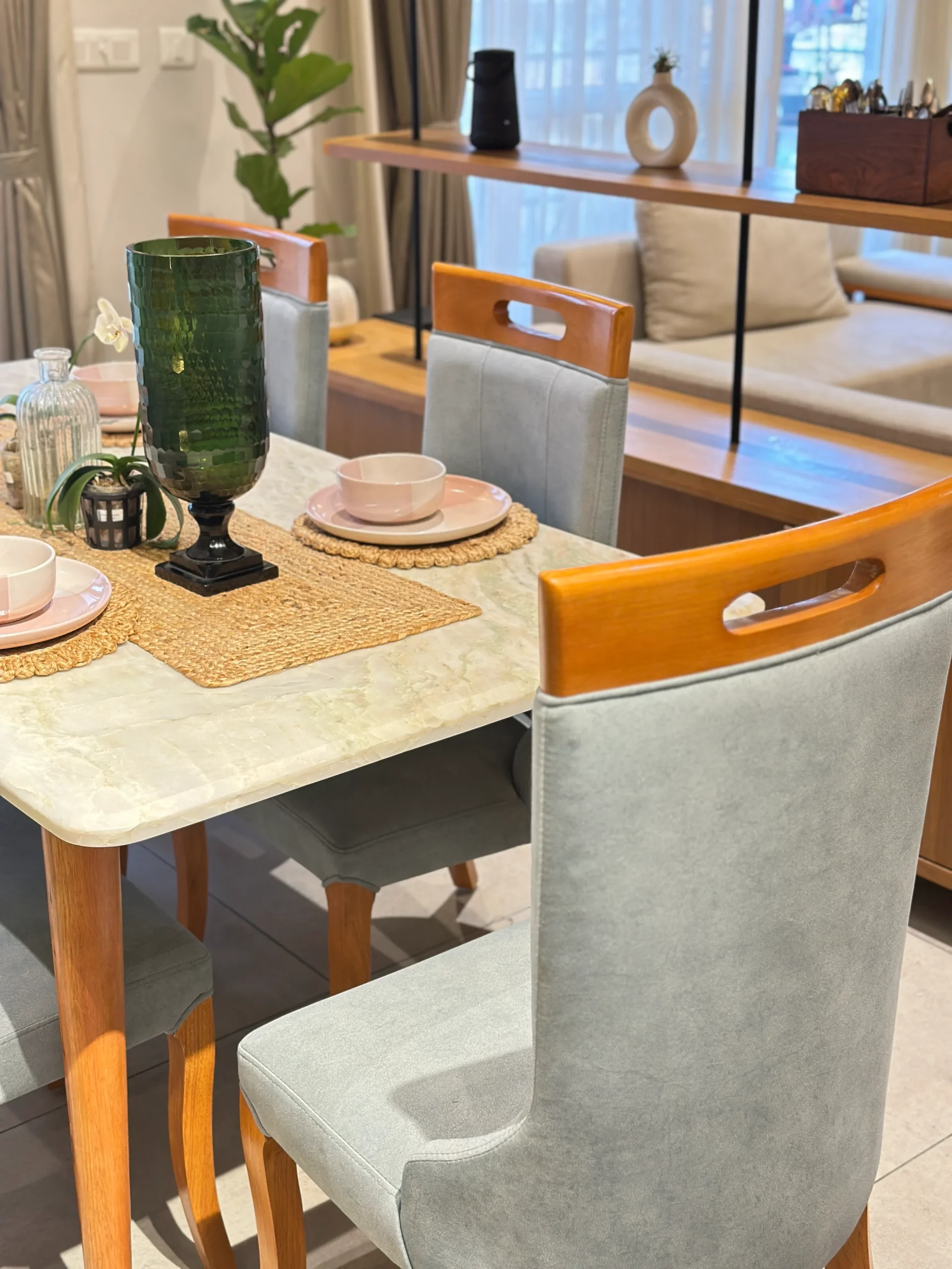 A thoughtfully designed 3 BHK duplex residence with terrace for Mr. Amlan at Birla Alokya, Whitefield. Spanning 2200 sq. ft., this home blends open, airy living with modern elegance. The duplex layout and private terrace create a seamless balance of comfort, functionality, and refined style, resulting in a warm and elevated home experience.